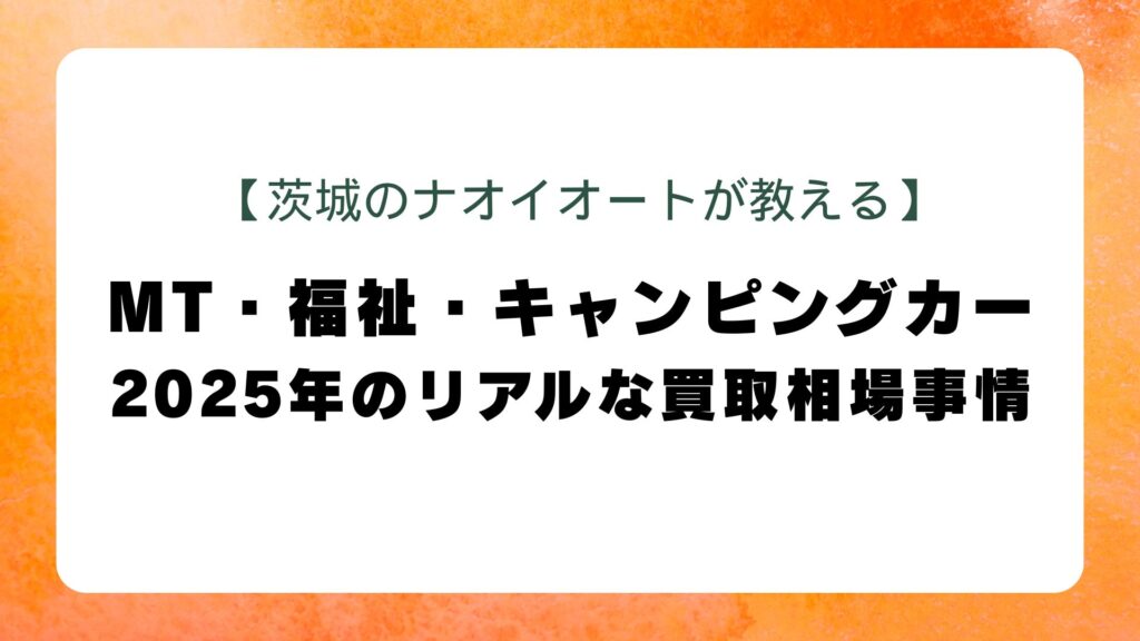 - MT車・福祉車両・キャンピングカーはニッチだが確実な需要があり、2025年現在価値が見直されている!