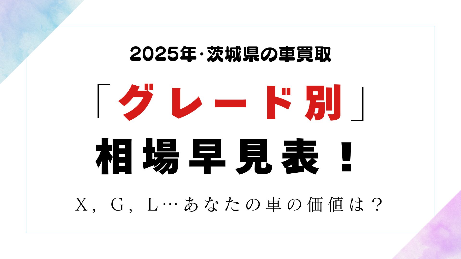 2025年・茨城県の車買取「グレード別」相場早見表!X, G, L…あなたの車の価値は?